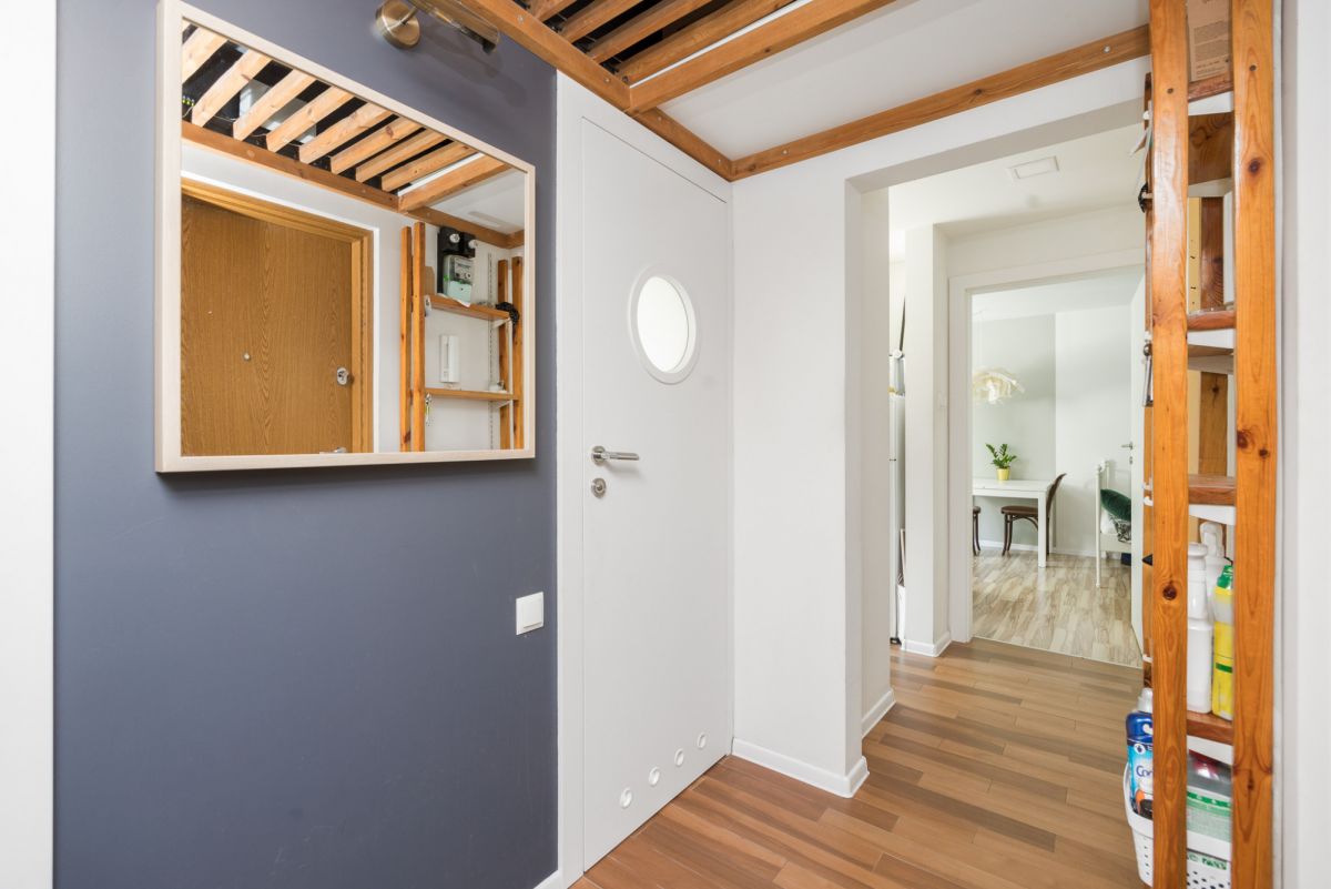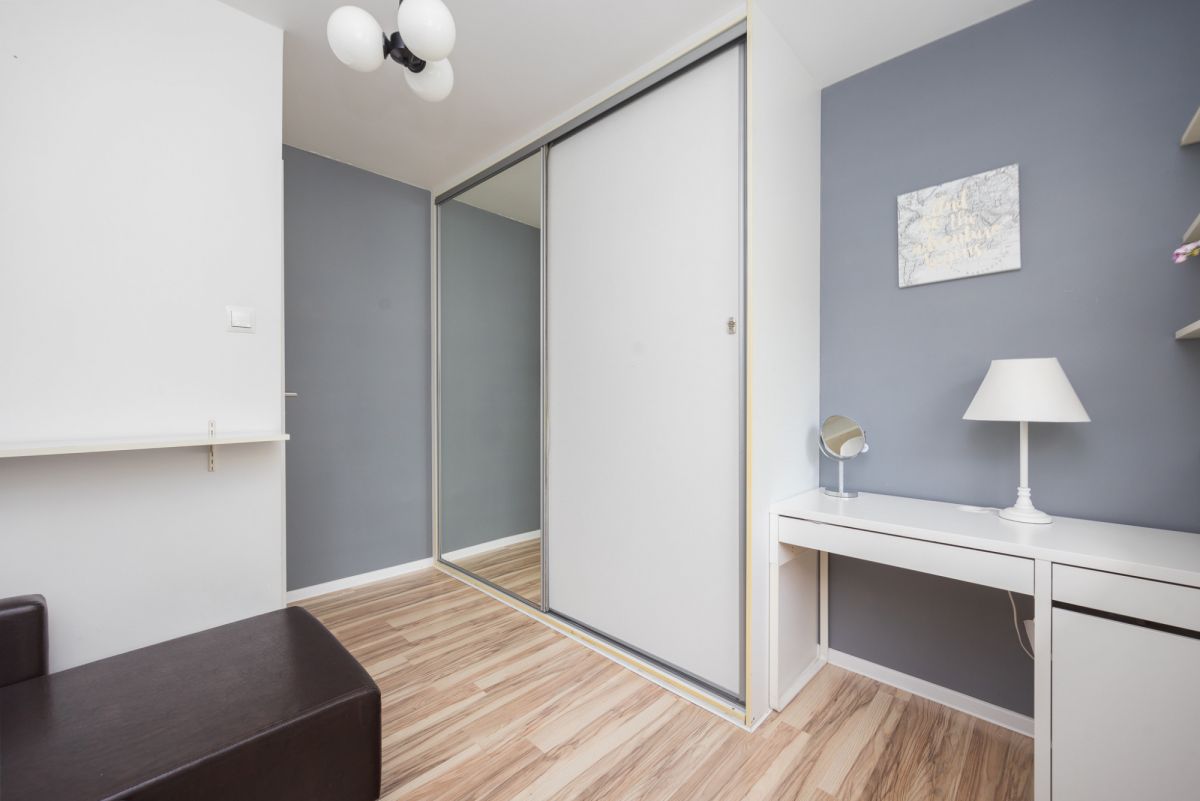W ramach oferty wszystkie stałe elementy wyposażenia, takie jak kuchnia w zabudowie oraz szafy, pozostają w cenie, co jest niezwykle korzystne dla przyszłych właścicieli.