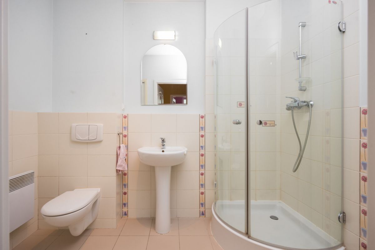 – łazienka z prysznicem i WC