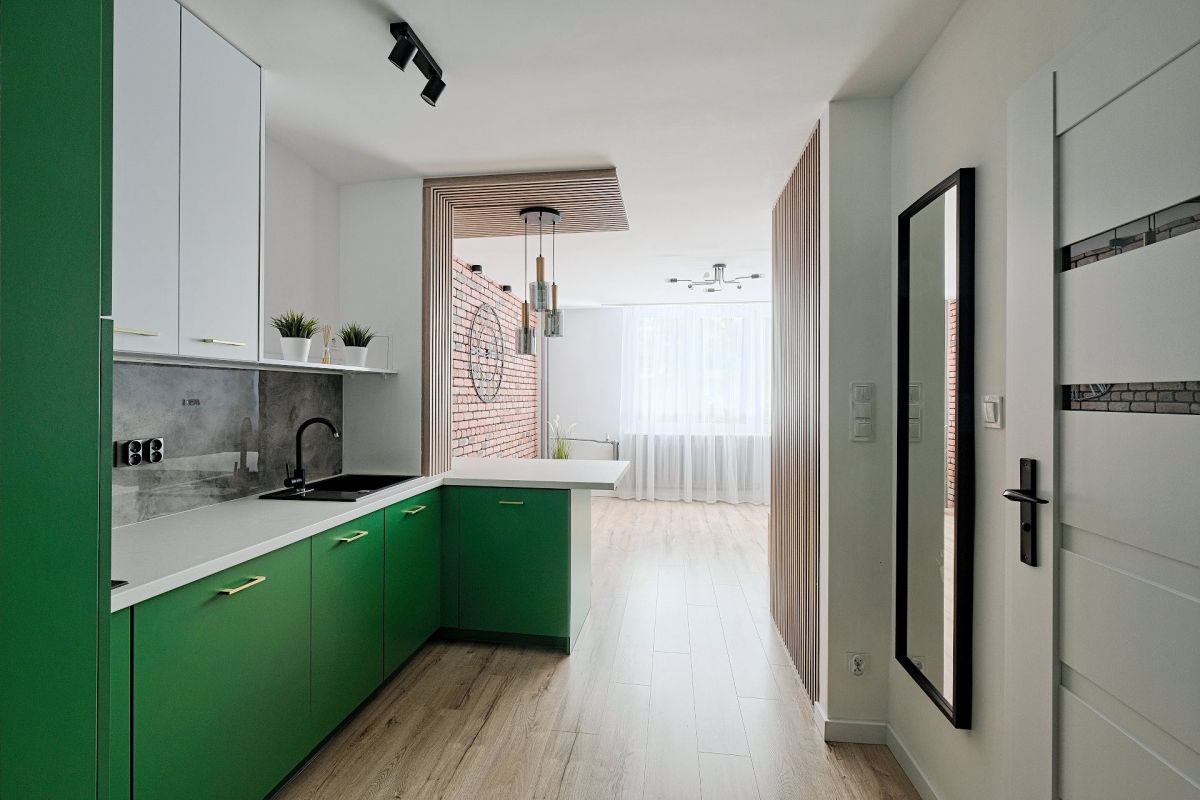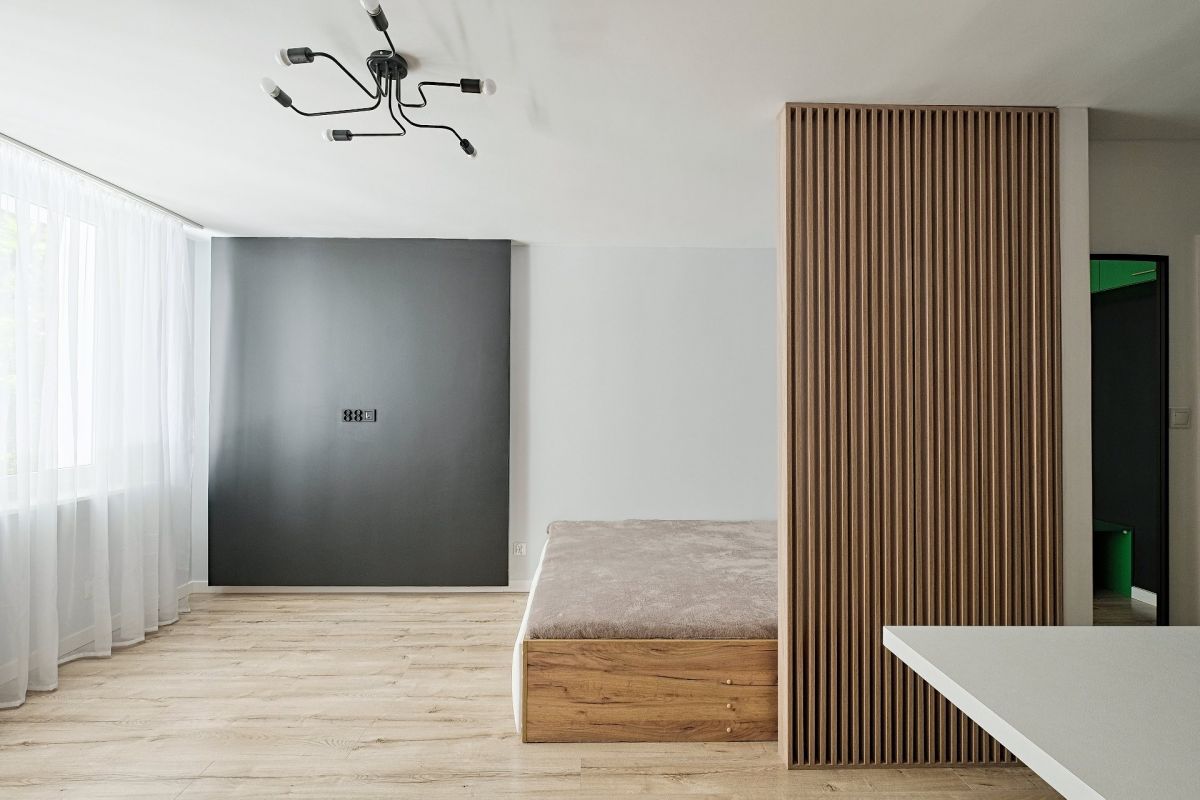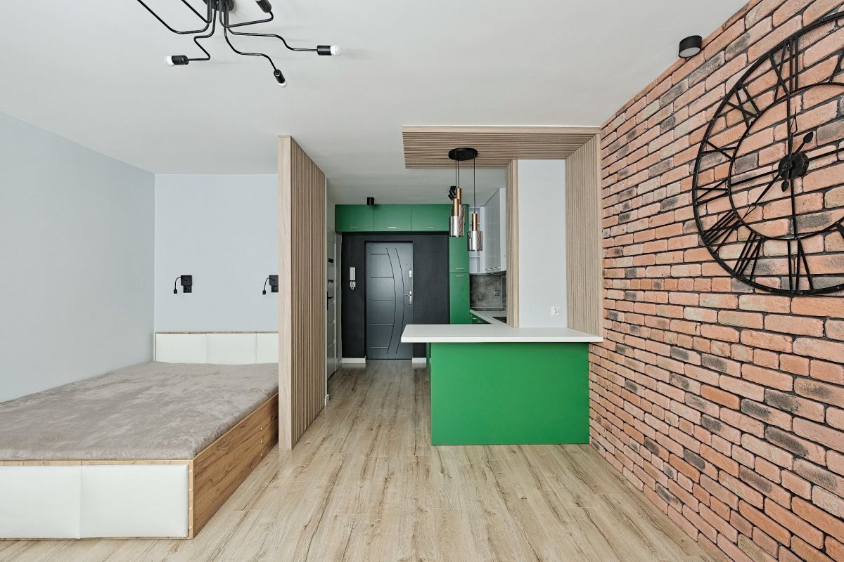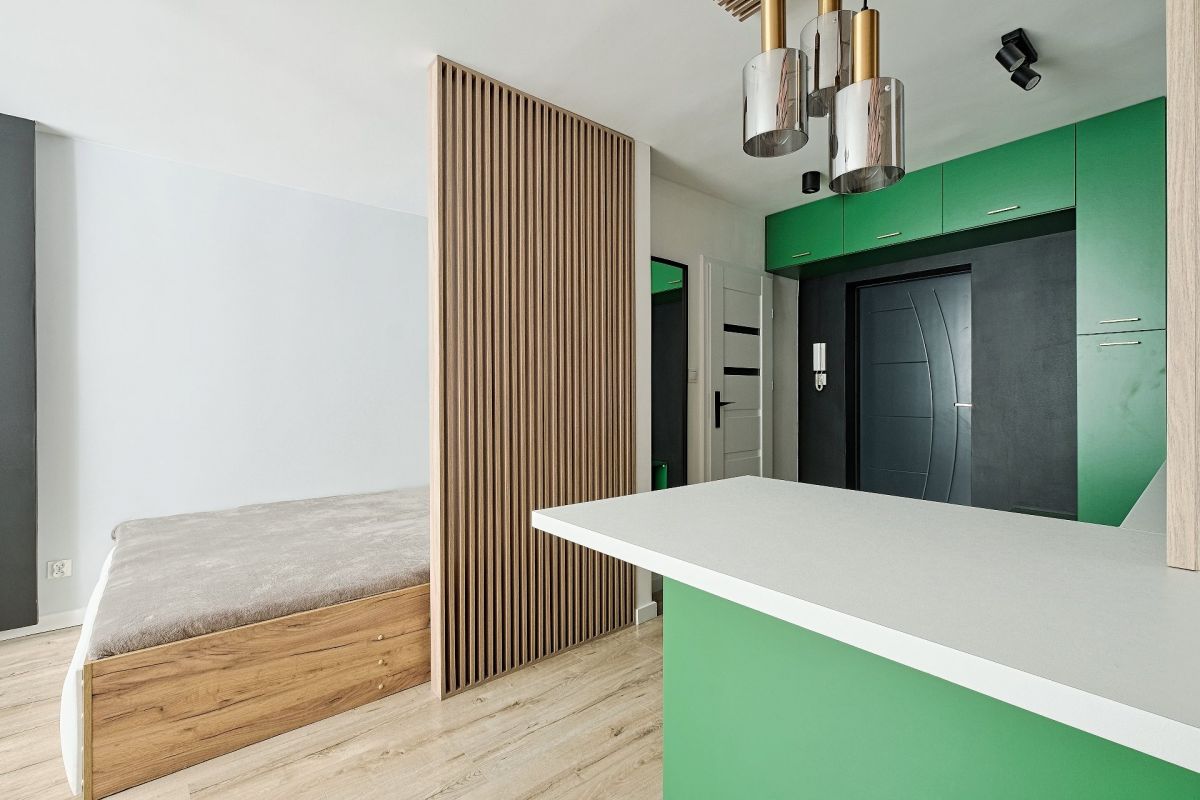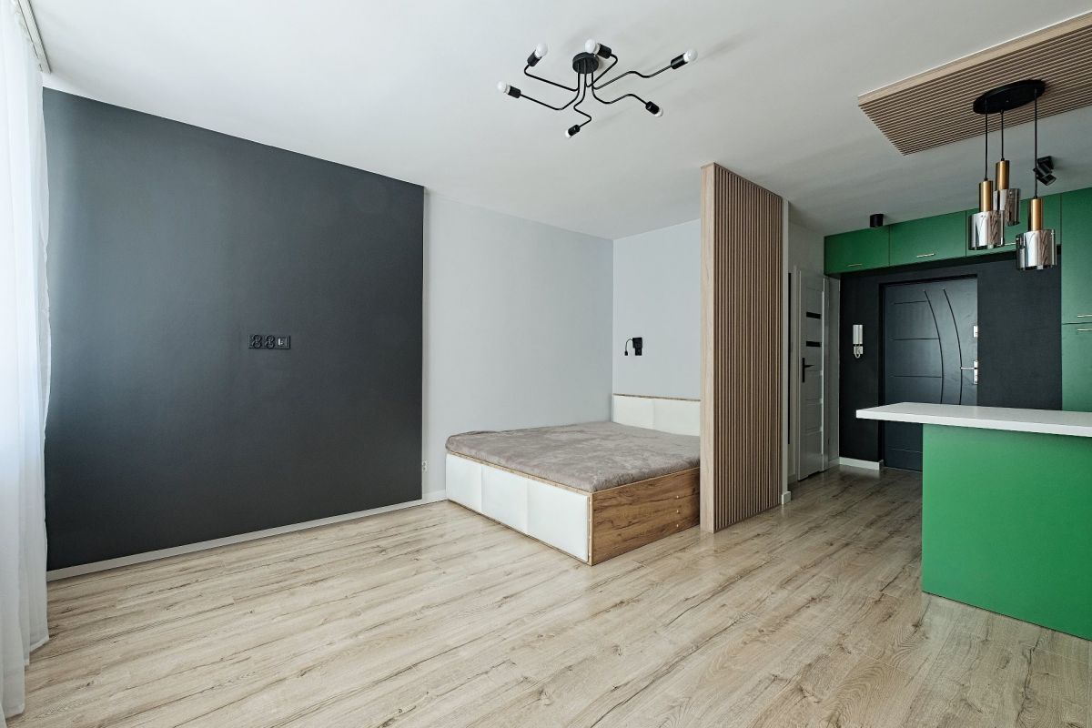 Przestrzeń mieszkania została inteligentnie zaplanowana i składa się z jednego pokoju, w którym znajduje się część sypialniana oraz aneks kuchenny, przedpokój i łazienka. Dzięki temu układowi, mieszkanie doskonale sprawdzi się jako inwestycja pod wynajem, przyciągając zarówno lokalnych najemców, jak i turystów.