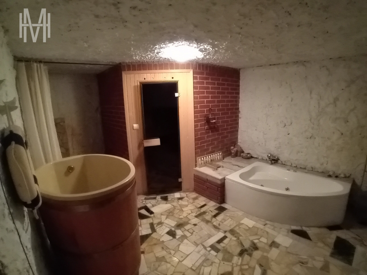 Nieruchomość wymaga odświeżenia i dostosowania do indywidualnych potrzeb nowych właścicieli. Na działce znajduje się obecnie dodatkowy garaż, teren na boisko, chata grillowa, oczko wodne wraz z „ruinami” zamku oraz basen. Wewnątrz budynku znajduje się kino domowe, bilard, sauna z prysznicem oraz siłownia.